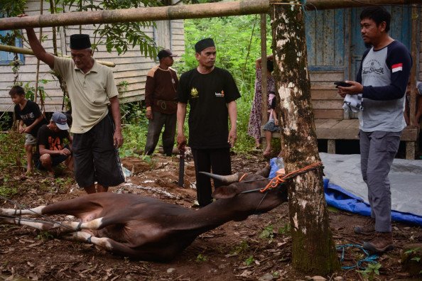 Warga mualaf Desa Kamawakan antusias membantu pelaksanaan ibadah qurban