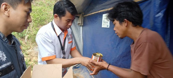 Distribusi kemudian dilanjutkan ke titik lokasi kedua yang berada di Kampung Cikupa pada pukul 11.00 WIB. Bantuan RendangMu diserahkan di lokasi hunian darurat yang dibangun oleh MDMC Kabupaten Bogor. Selain diberikan kepada penyintas yang menempati hunian darurat, RendangMu juga diberikan kepada warga sekitar yang terdampak bencana.