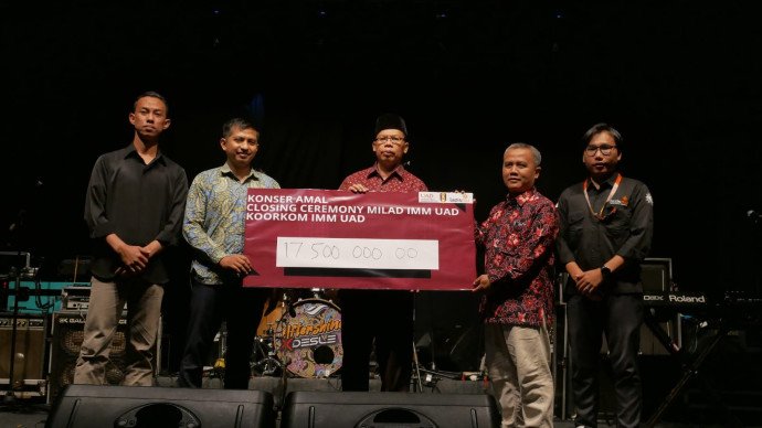 KOTA YOGYAKARTA -- Konser Amal Milad Ikatan Mahasiswa Muhammadiyah (IMM) ke-59 yang berlangsung pada Selasa (30/05) berhasil menghimpun donasi dari hasil penjualan tiket. Donasi ini kemudian diserahkan oleh Koordinator Komisariat IMM Universitas Ahmad Dahlan (KORKOM IMM UAD) kepada Lazismu Wilayah DI Yogyakarta. Total donasi yang diserahkan sebesar 17,5 juta rupiah.