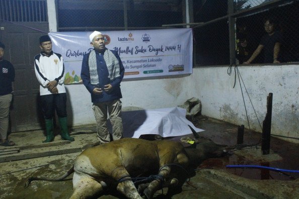 KOTA BANJARMASIN -- Idul Adha 1444 H disemarakkan dengan berbagi daging qurban kepada pada mualaf binaan Muhammadiyah di kawasan Pegunungan Meratus. Lazismu Wilayah Kalimantan Selatan memfasilitasi kegiatan ini dengan dukungan dari Kantor Layanan (KL) Lazismu Al Jihad dan Pemuda Muhammadiyah Kota Banjarmasin. Selain itu, Komunitas Biker Shirath juga turut serta dengan mengamanahkan satu ekor sapi qurban untuk didistribusikan dalam pelaksanaan ibadah qurban kali ini.