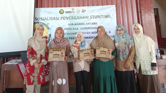 KABUPATEN GUNUNGKIDUL -- Bekerja sama dengan RS PKU Muhammadiyah Wonosari dan Kantor Layanan (KL) Lazismu RS PKU Muhammadiyah Wonosari, Nasyiatul Aisyiyah menggelar sosialisasi mengenai pencegahan stunting dan pembagian makanan tambahan bagi ibu hamil dan balita. Tujuannya adalah untuk membuka wawasan bagi para ibu mengenai pentingnya pencegahan stunting sedini mungkin, serta memberikan pengetahuan bagaimana deteksi dini serta penanganan yang tepat bagi penderita stunting. Kegiatan ini berlangsung di Kalurahan Semin, Kepanewon Semin, Kabupaten Gunungkidul.
