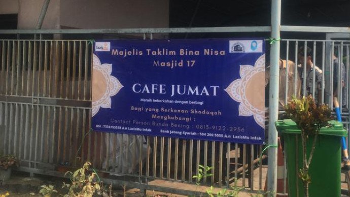 KABUPATEN BANYUMAS -- Gerakan untuk berbagi terus didorong oleh Lazismu Kabupaten Banyumas. Salah satunya melalui dukungan kepada program-program yang dijalankan para mitra, di antaranya adalah program Café Jumat. Program ini digagas oleh ibu-ibu Bina Nisa Masjid 17 di masjid yang berada di Jalan Dr. Angka, Karangjengkol, Sokanegara, Kecamatan Purwokerto Timur, Kabupaten Banyumas.