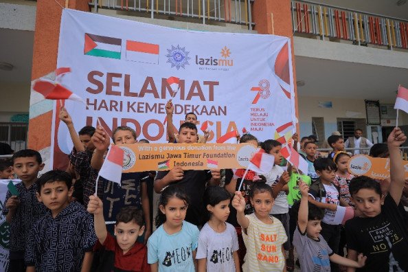 Wakil Ketua Badan Pengurus Lazismu Wilayah Jawa Timur, Aditio Yudono menyebutkan, bantuan 130 paket School Kit atau alat sekolah senilai 56 juta rupiah diserahkan di sebuah gedung madrasah di Kota Khan Yunis. Acara ini diiringi dengan kegiatan perayaan HUT ke-78 Kemerdekaan RI yang ke-78 dan dipandu oleh tim relawan yang ada di Gaza. Koordinatornya relawan adalah Ustadz Ahmad Saleem Sulaiman Abu Anza, mitra tasyaruf dari Yayasan Wakaf Khan Yunis, Gaza.