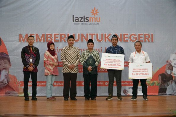 KOTA YOGYAKARTA -- Rumah Sakit PKU Muhammadiyah Yogyakarta-Gamping dan PT Bank Pembiayaan Rakyat Syariah (BPRS) Harta Insan Karimah (HIK) Mitra Cahaya Indonesia (MCI) memercayakan dana zakat, infak, dan sedekah (ZIS) melalui Lazismu Wilayah DI Yogyakarta. Penyerahan dana ZIS ini dilakukan saat Peluncuran Program Pendistribusian dan Pendayagunaan Lazismu Wilayah DI Yogyakarta Semester II 2023 yang bertajuk "Memberi Untuk Negeri, sinergi, inspirasi Jogja" secara simbolis di Aula SMA Muhammadiyah 2 Yogyakarta pada Sabtu (16/09).