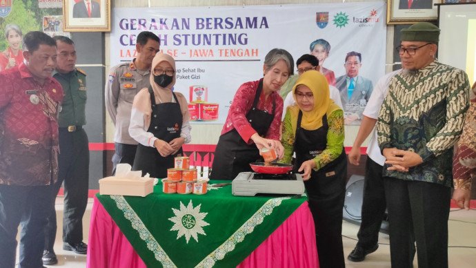KABUPATEN CILACAP -- Bertempat di Pendopo Kecamatan Jeruklegi, Lazismu Kabupaten Cilacap turut ambil bagian dalam kegiatan bertajuk "Gerakan Bersama Cegah Stunting Lazismu se-Jawa Tengah" pada Selasa (19/09). Acara ini menghadirkan Pj. Bupati Cilacap, Yunita Dyah Suminar, S.K.M., M.Sc., M.Si. yang ditandai dengan aksi memasak RendangMu yang disaksikan oleh para tamu undangan. Kegiatan ini juga dihadiri Pimpinan Daerah Aisyiah (PDA) Kabuapaten Cilacap, Dinas Kesehatan, Forkopimcam Jeruklegi, perangkat desa se-Kecamatan Jeruklegi, serta ratusan ibu hamil dan menyusui.