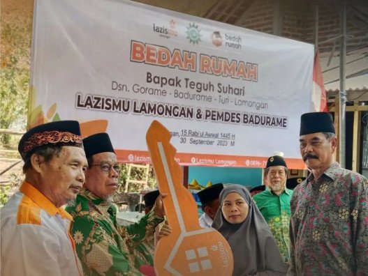 KABUPATEN LAMONGAN -- Bedah Rumah merupakan salah satu program unggulan Lazismu Kabupaten Lamongan. Program yang berada di bawah Pilar Sosial Dakwah ini merupakan solusi bagi kaum dhuafa dalam mendapatkan hunian yang layak. Kali ini, Lazismu Kabupaten Lamongan kembali menjalankan program tersebut dengan penerima manfaat keluarga Teguh Suhari, warga Dusun Gorame, Desa Badurame, Kecamatan Turi, Kabupaten Lamongan.