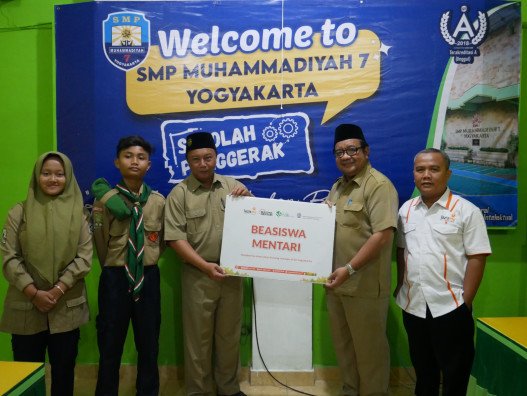 KOTA YOGYAKARTA -- Lazismu Wilayah DI Yogyakarta membagikan bantuan beasiswa kepada para peserta didik di lingkungan pendidikan Muhammadiyah DI Yogyakarta. Beasiswa ini diberikan untuk membantu hingga lulus sekolah dan dapat meneruskan hingga ke jenjang yang lebih tinggi. Penyerahan beasiswa dilakukan di SMP Negeri 7 Yogyakarta, dihadiri oleh Wakil Ketua Pimpinan Wilayah Muhammadiyah (PWM) DI Yogyakarta, Ketua Badan Pengurus Lazismu Wilayah DI Yogyakarta, serta didampingi oleh Kepala SMP Muhammadiyah 7 Yogyakarta.