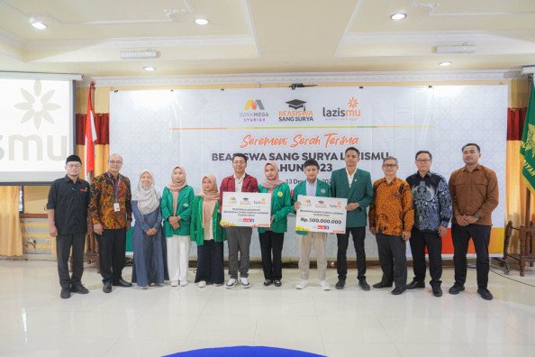 JAKARTA -- Sebagai salah satu bentuk pelaksanaan program Pilar Pendidikan, Lazismu Pimpinan Pusat (PP) Muhammadiyah menyelenggarakan kegiatan penyerahan beasiswa kepada para penerima manfaat pada Rabu (13/12) di Gedung Pusat Dakwah Muhammadiyah, Jalan Menteng Raya No. 62 Jakarta Pusat. Kegiatan bertajuk Seremoni Serah Terima Beasiswa Sang Surya Lazismu Tahun 2023 ini dihadiri oleh Sekretaris PP Muhammadiyah Muhammad Izzul Muslimin, Wakil Bendahara I Majelis Pendidikan Dasar Menengah dan Pendidikan Non Formal (Dikdasmen dan PNF) PP Muhammadiyah Muhammad Sofyan, Direktur Operasi & Transformasi Bank Mega Syariah Slamet Riyadi, perwakilan CT ARSA Foundation Nurfadlan, serta Lazismu PP Muhammadiyah yang terdiri dari Ketua Badan Pengurus Ahmad Imam Mujadid Rais, Wakil Sekretaris II Badan Pengurus Hafizh Syafaaturrahman, serta Direktur Fundraising dan Kerja Sama Edi Muktiono.