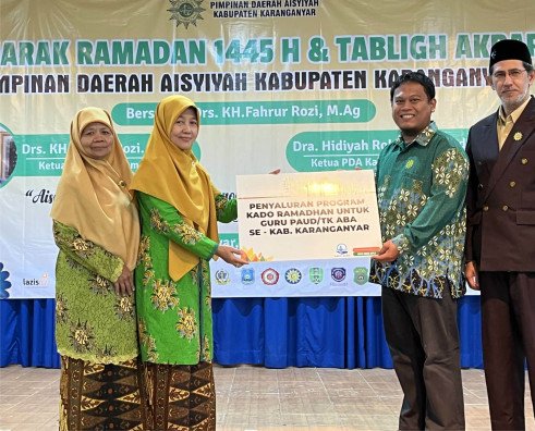 KABUPATEN KARANGANYAR -- Dikemas dalam program Bakti Guru, Lazismu Kabupaten Karanganyar menunjukkan kepedulian terhadap tenaga pendidik di daerah tersebut. Bentuknya adalah penyaluran bantuan berupa Kado Ramadhan. Sasaran penyaluran program yang berada di bawah Pilar Pendidikan Lazismu ini adalah TK/PAUD Aisyiyah di Kabupaten Karanganyar.
