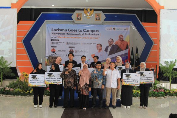 KABUPATEN TASIKMALAYA -- Kegiatan Lazismu Goes to Campus yang digelar oleh Lazismu Wilayah Jawa Barat juga dimeriahkan dengan penyerahan beasiswa. Acara ini berlangsung di Graha Universitas Muhammadiyah Tasikmalaya (UMTAS) pada Rabu (30/05). Tujuannya adalah mengenalkan tentang Lazismu sekaligus memberikan ilmu baru kepada civitas akademika UMTAS terkait zakat dan ekonomi syariah.