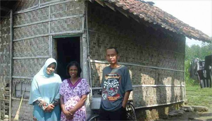 Bantul-LAZISMU. Rumah berdinding bambu itu adalah rumah milik Ibu Wuryanti. Rumah berbilik bambu miliknya berlokasi di Dusun Ngentak, Mulyodadi, Bambanglipuro, Bantul, Yogyakarta, yang mendapat kesempatan menerima program bedah rumah dari Lazismu (06/06/2016).