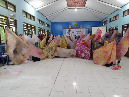 Sementara itu Pupung Pursita selaku Penanggungjawab program Pelatihan menyampaikan bahwa para peserta pelatihan ecoprint tidak hanya mendapatkan teknik membuat motif dari bunga dan daun pada kain, tetapi juga diberikan teknik membuat motif dalam media lainnya seperti pada kulit kambing atau domba, mug, kertas dan media lainnya