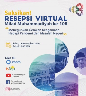 Persyarikatan Muhammadiyah menyelenggarakan Resepsi Milad ke 108 di Edutorium Universitas Muhammadiyah Surakarta (UMS). Resepsi Milad yang digelar pada Rabu (18/11) ini dihadiri oleh tamu undangan terbatas dan disiarkan secara daring melalui berbagai platform digital.