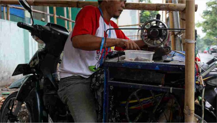 Modal utamanya sepeda motor bebek yang sudah dimodifikasi, mesin jahit menempel persis di belakang sepeda motornya. Bisa dipakai untuk berkeliling dan bisa juga untuk mangkal, apabila menjahit duduknya menghadap ke belakang.