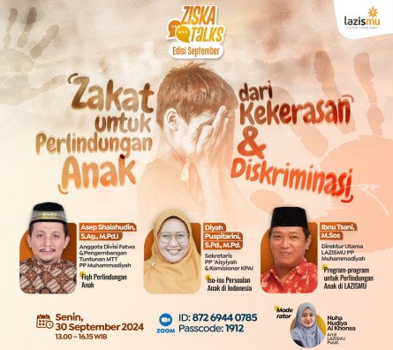 Perihal persoalan itu, Divisi Research and Development (R & D) Lazismu Pusat mengupasnya dalam Ziska Talk pada Senin, (30/9/2024) yang mengusung tema: Zakat Untuk Perlindungan Anak dari Kekerasan dan Diskriminasi yang digelar secara online.