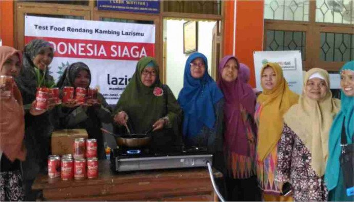 Saat tes rendang kambing, setelah dimasak oleh ibu-ibu Aisiyah Bali, yang disaksikan juga oleh wakil ketua PWM Bali. Rendang kemasan produksi Lazismu tersebut dites mengenai rasa dan tekstur apakah sudah cocok untuk warga terdampak bencana.