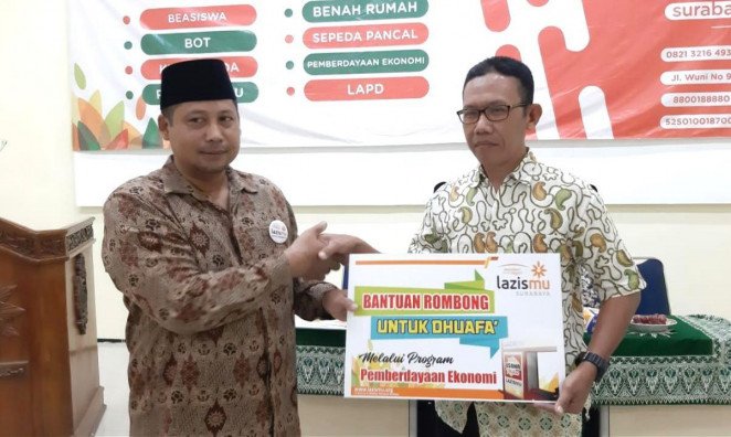 Penyerahan bantuan rombong secara simbolis dilakukan oleh Ketua Lazismu Kota Surabaya Sunarko di Gedung Dakwah Muhammadiyah Surabaya.