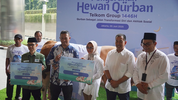 JAKARTA --- Dalam semangat berbagi qurbanmu bahagiakan sesama, pada Idul Adha tahun 1446 H ini, Lazismu kembali dipercaya oleh Telkom Grup sebagai mitra strategis dalam penyaluran hewan kurban dari PT. Telkom Indonesia, Tbk melalui Majelis Taklim Telkom Grup (MTTG).