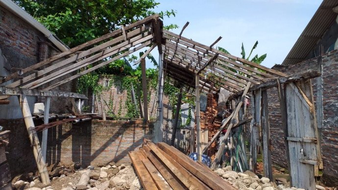 Terpaksa rumah itu tetap ditempati, meski dinding depannya sudah lapuk. Kerangka atapnya juga sudah keropos, reyot dimakan usia. Setahun terakhir ini rumah itu sudah tak lagi ditempati Bowo dan keluarganya, khawatir atapnya ambruk. Bowo terpaksa memutuskan memboyong keluarganya menumpang di rumah mertua.