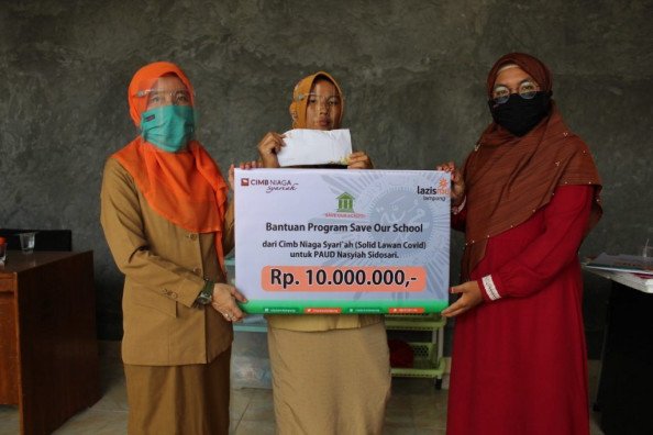 Bantuan yang diserahkan oleh CIMB Niaga Syariah kepada Lazismu Lampung sejumlah Rp . 10 juta, yang langsung disalurkan ke lembaga pendidikan yakni PAUD Nasyiah.