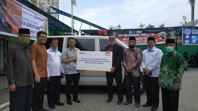 Medan – LAZISMU. PT Bank Rakyat Indonesia (Persero) Tbk, menyerahkan donasi satu unit Ambulans Siaga kepada Muhammadiyah melalui Lembaga Amil Zakat, Infaq & Shadaqah Muhammadiyah (Lazismu) Kota Medan. Bantuan ambulans dari BRI itu diinisasi oleh Nasril Bahar (Anggota DPR RI ) dan M. Faisal B. IRKH (Anggota DPRD Sumut ).