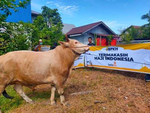 Pontianak - LAZISMU. Idul Adha tahun ini, Lazismu bersama Badan Pengelola Keuangan Haji (BPKH) menyalurkan hewan kurban berupa sapi satu ekor yang pelaksanaan penyembelihannya berlokasi di Dusun Pangkalan Buton, Kecamatan Sukadana, Kabupaten Kayong Utara, Provinsi Kalimantan Barat.