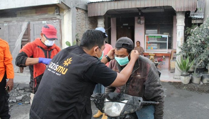 Tim Lazismu dan relawan yang turun ke lokasi, selain Muhammad Arifin, ada amil lainnya seperti Yudha Pratama, Putrama Al-Khair, Azwin Fahmi Veriansyah dan An-Nisa. Semua ekstra hati-hati menyusul material debu yang masih bergerak di udara.