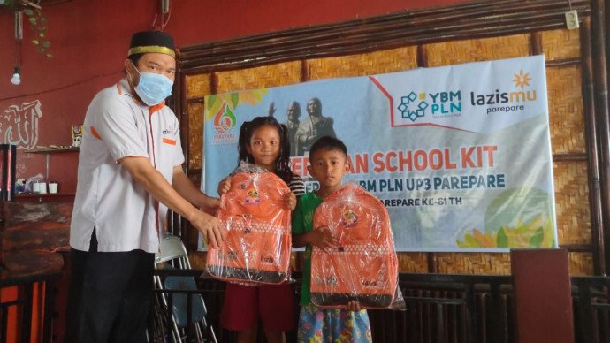 PAREPARE - Bertepatan hari ulang tahun ke 61 kota Parepare yang jatuh pada tanggal 17 Februari 2021, Lazismu Kota Parepare bersama Yatasan Baitul Maal (YBM) UP3 PLN Parepare memberikan kado berupa School Kit (Kelengkapan belajar) kepada puluhan siswa SD se kota Parepare yang masuk dalam keluarga yatim dan dhuafa.