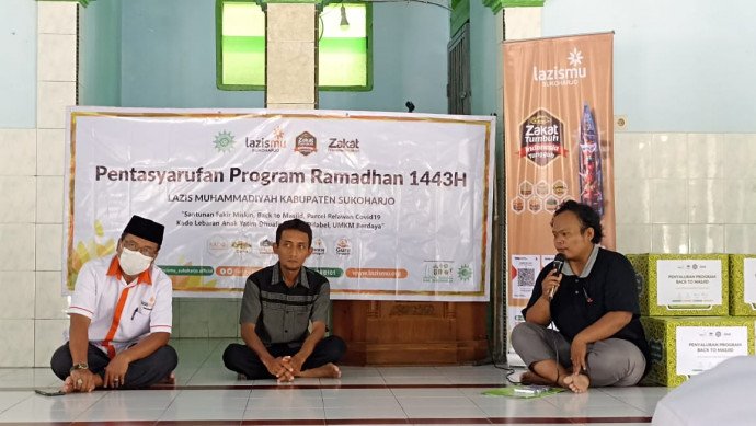 Mushlih kemudian menambahakan, pada kegiatan yang berlangsung hari Sabtu (09/04) ini Lazismu Kabupaten Sukoharjo juga menyerahkan bantuan kepada Masjid Barokah Karang Tengah Bendosari berupa peralatan sholat, mushaf Al-Qur'an, serta dan peralatan kebersihan. "Harapannya dengan adanya program ini bisa mendukung aktivitas masjid selama Ramadhan dan memperoleh kenyamanan dalam beribadah," ujarnya.