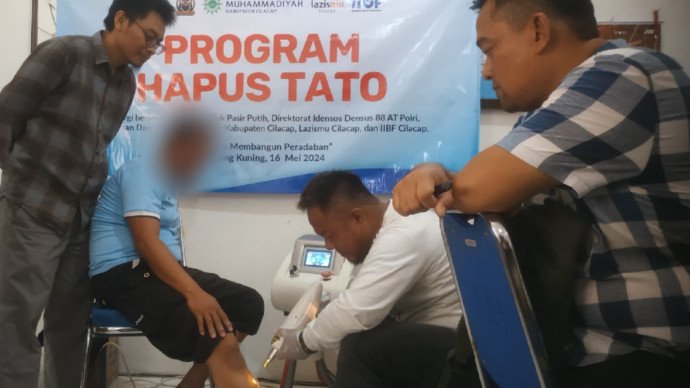 Menyongsong hari kebebasannya, empat orang napiter tersebut menghapus tatonya pada Kamis (19/05) sebagai ikhtiar untuk kembali kepada keluarga dalam kondisi terbaik. Program Hapus Tato ini terlaksana berkat sinergi antara Lapas High Risk Pasir Putih, Direktorat Idensos Densus 88 AT Polri, Pimpinan Daerah Muhammadiyah (PDM) Cilacap, Lazismu Kabupaten Cilacap, dan Indonesian Islamic Business Forum (IIBF) Cilacap.